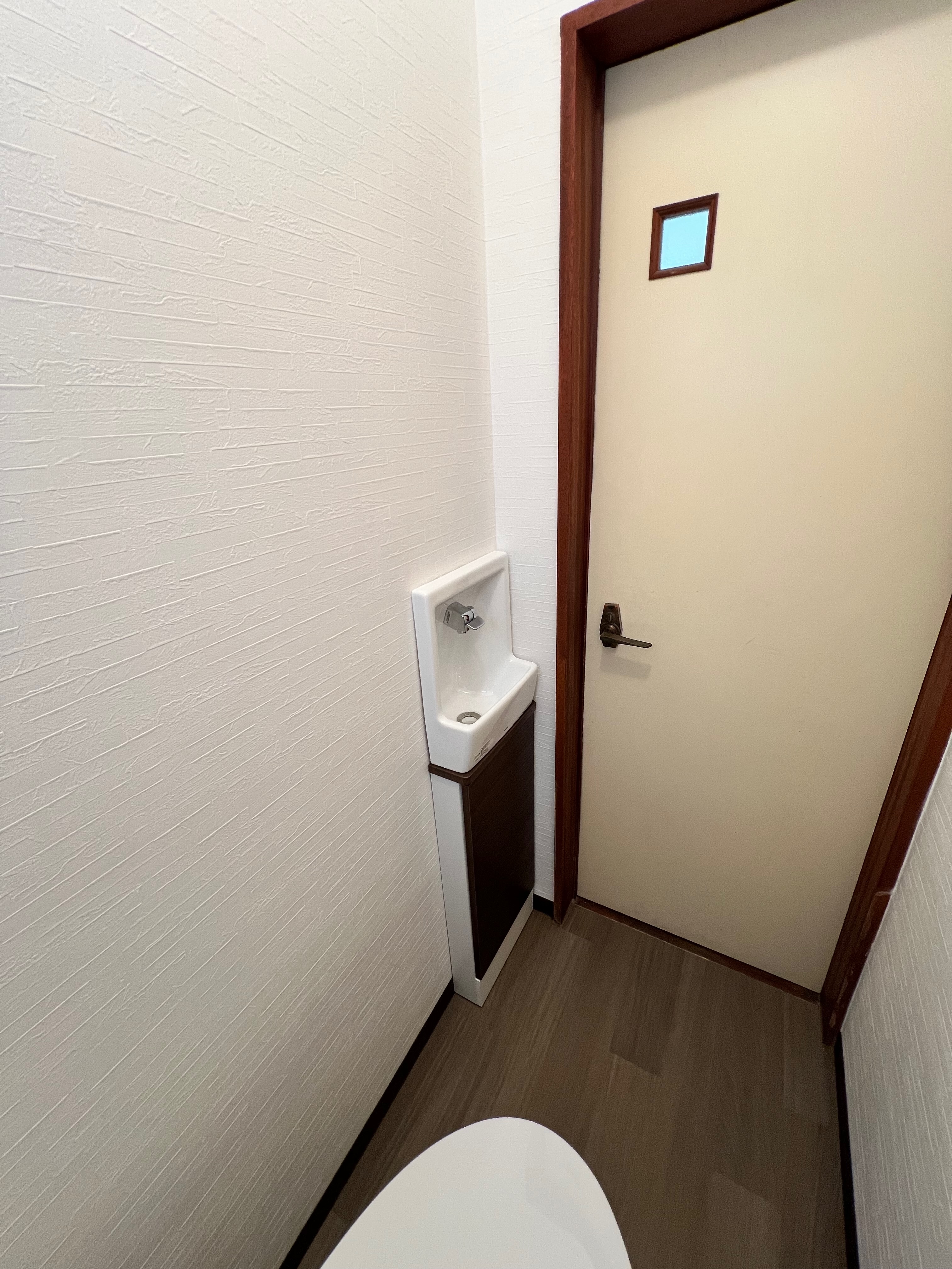 クロスを貼って、床は土足で使用出来るサンゲツのエスリュームを使用しました。