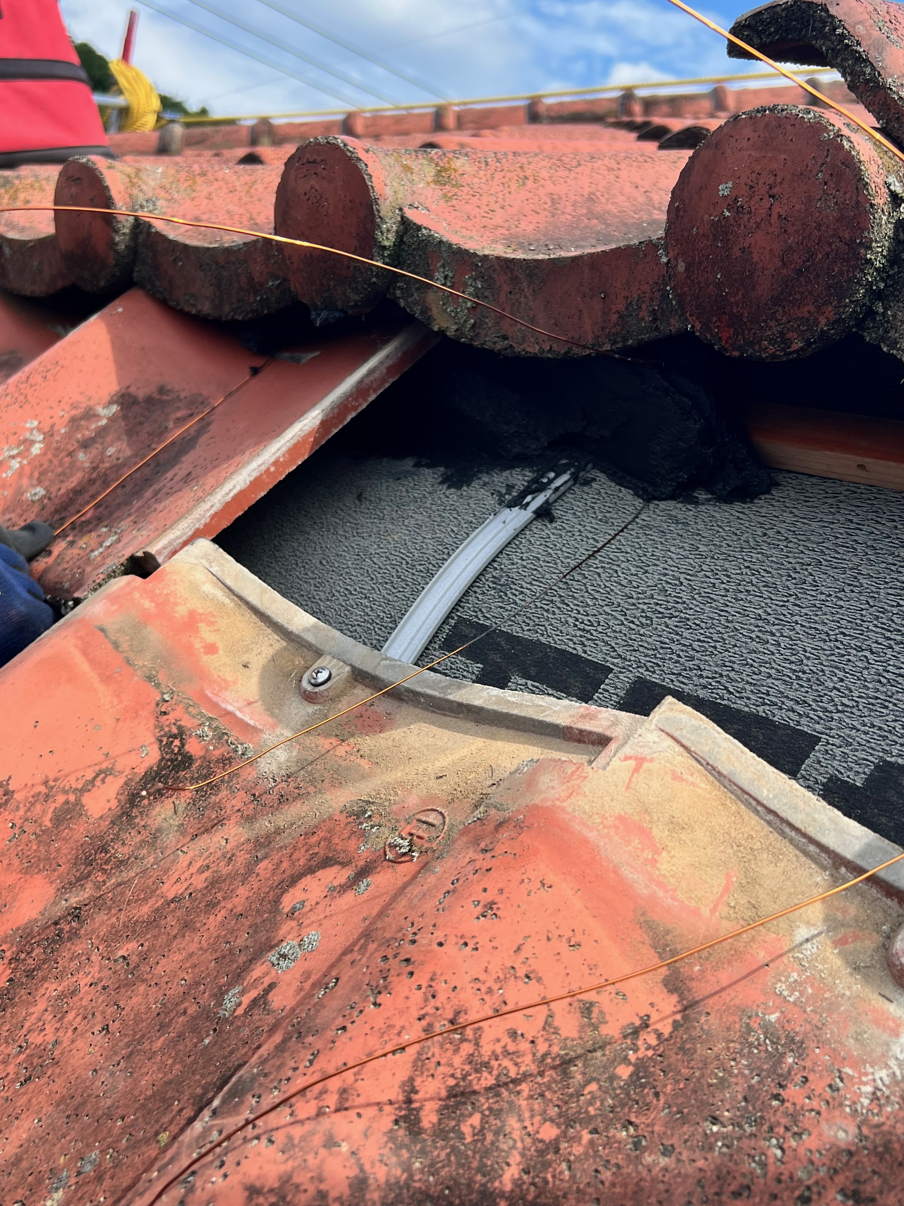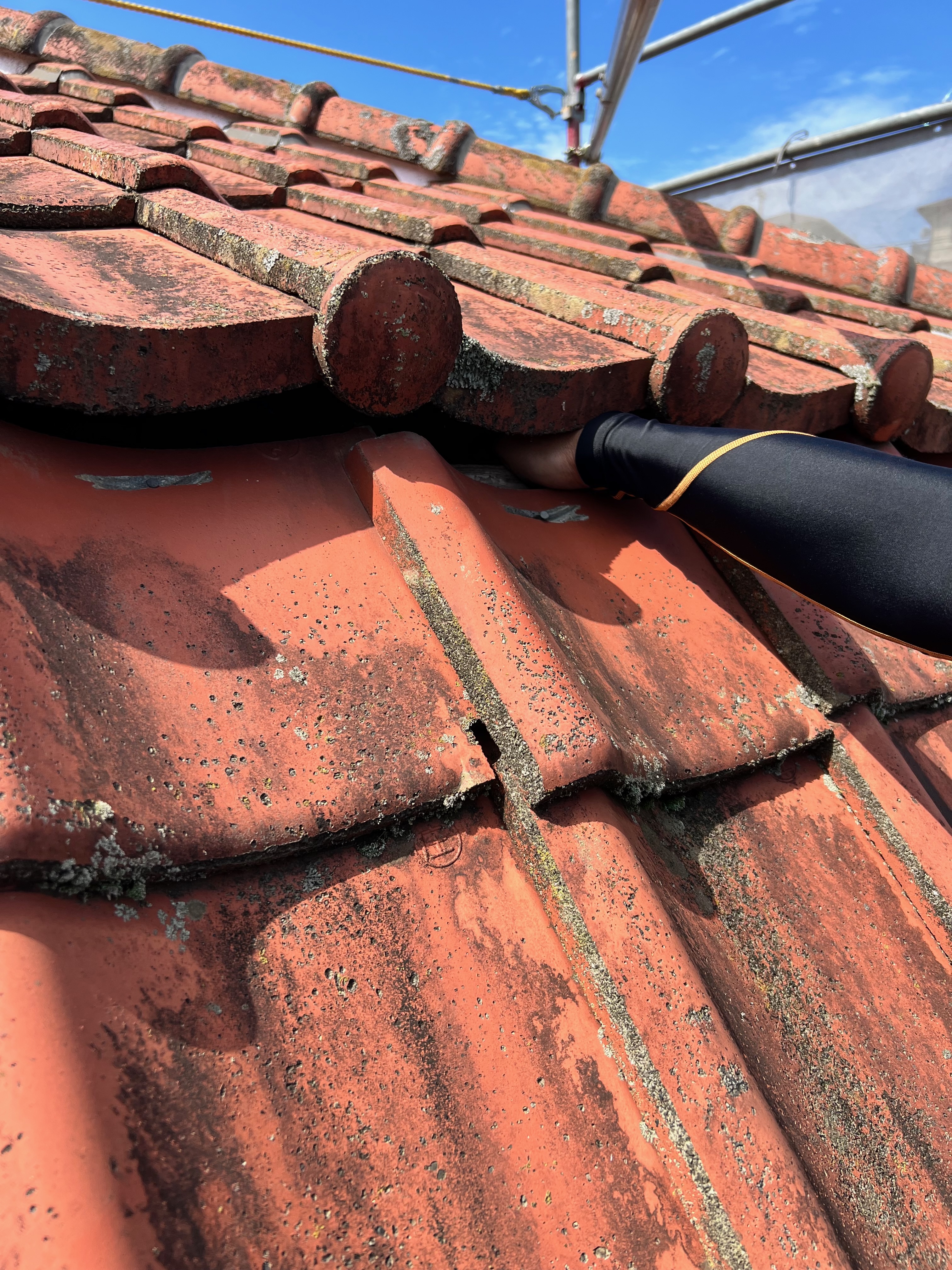 急勾配屋根で瓦が重みで下がってしまい、手が入る程の隙間が出来てそこから雨が入っていました。