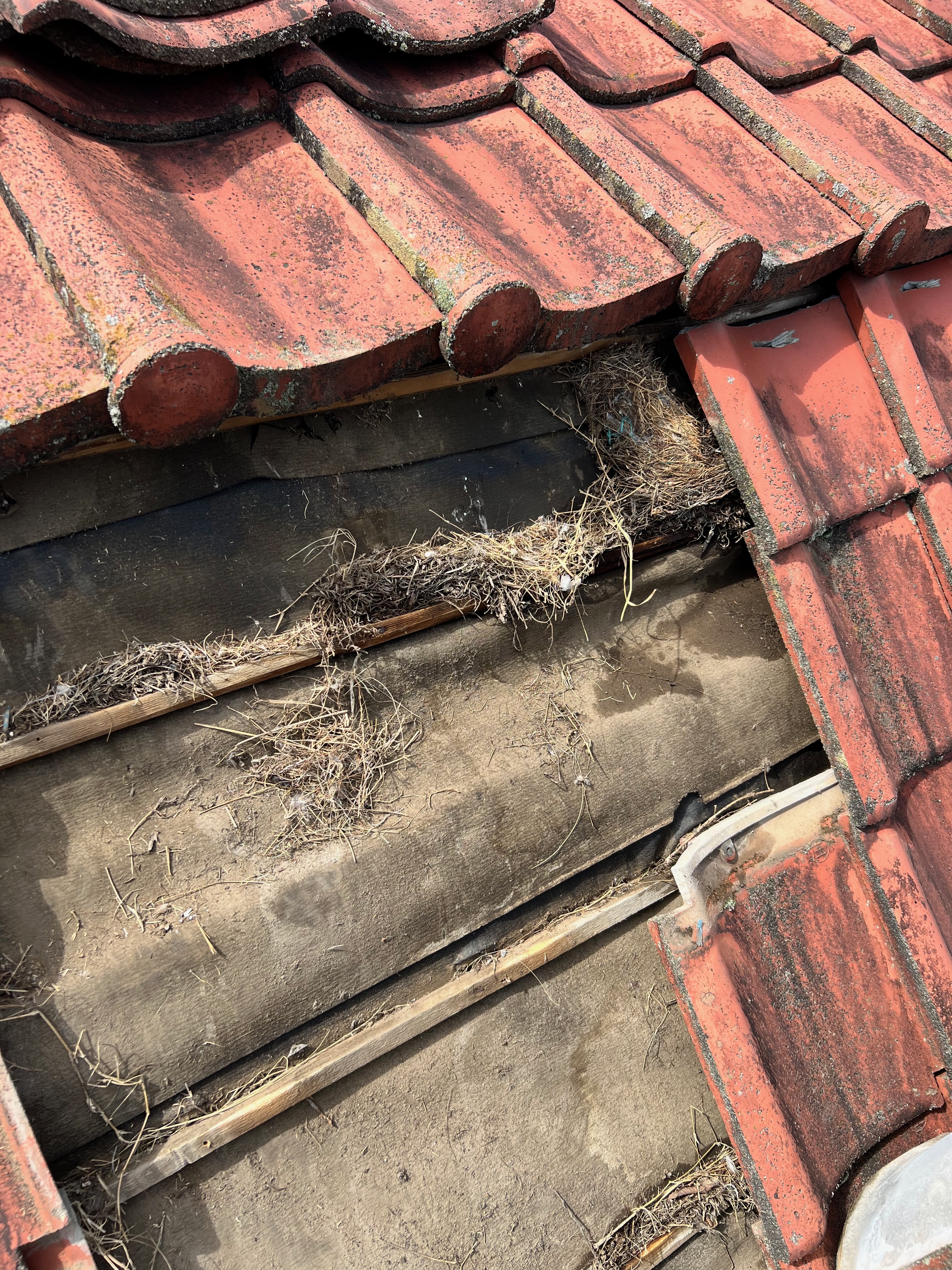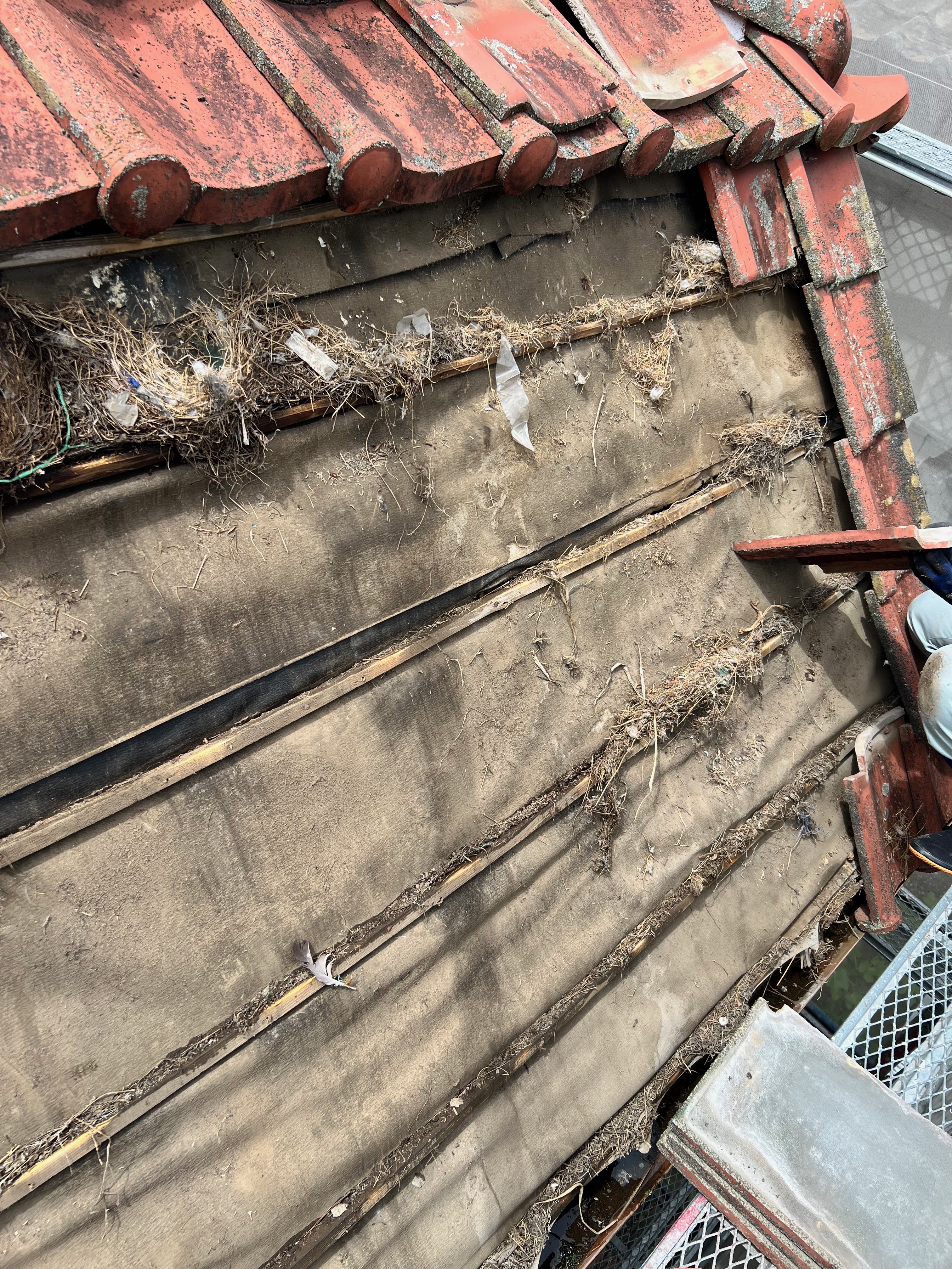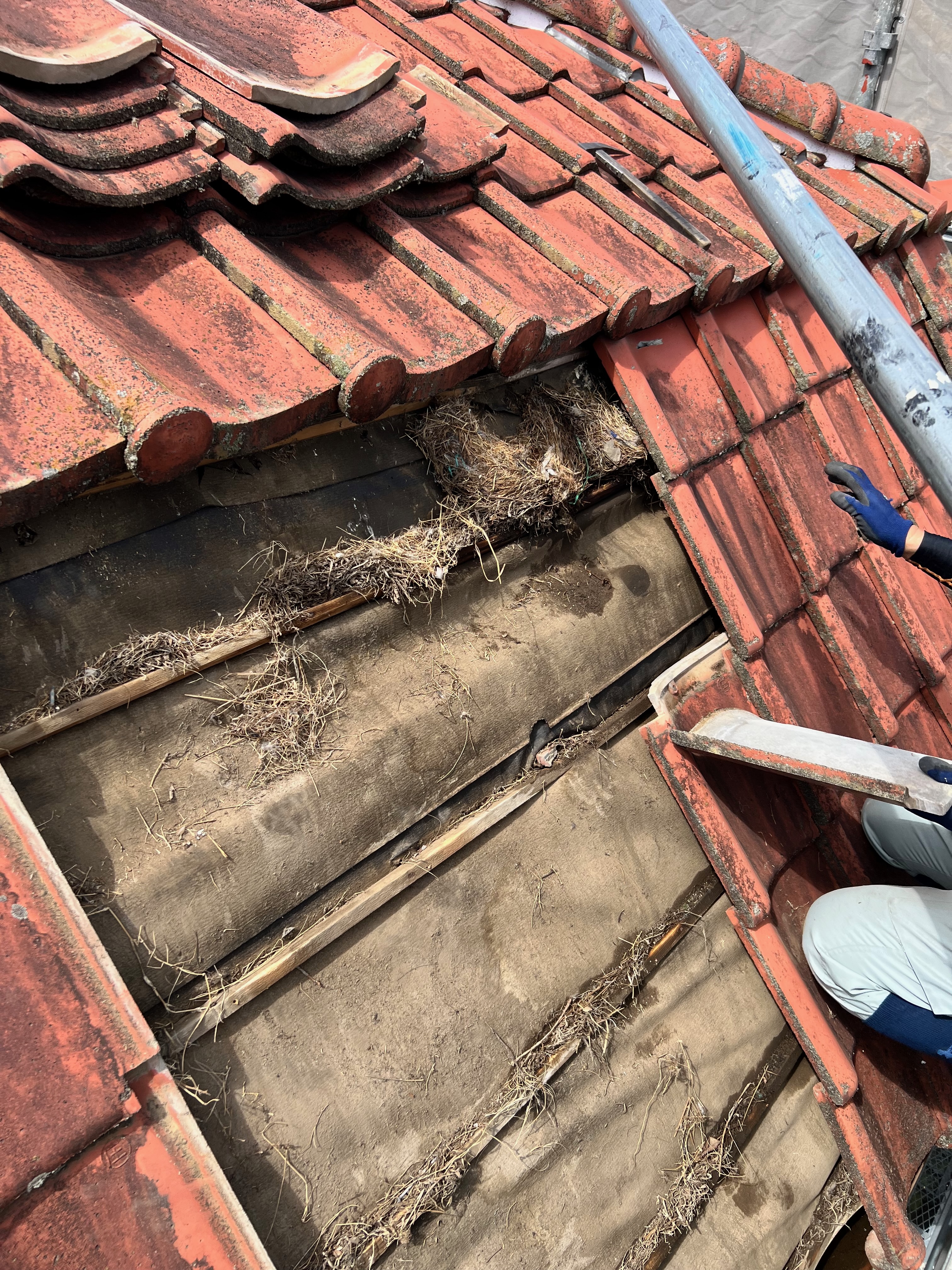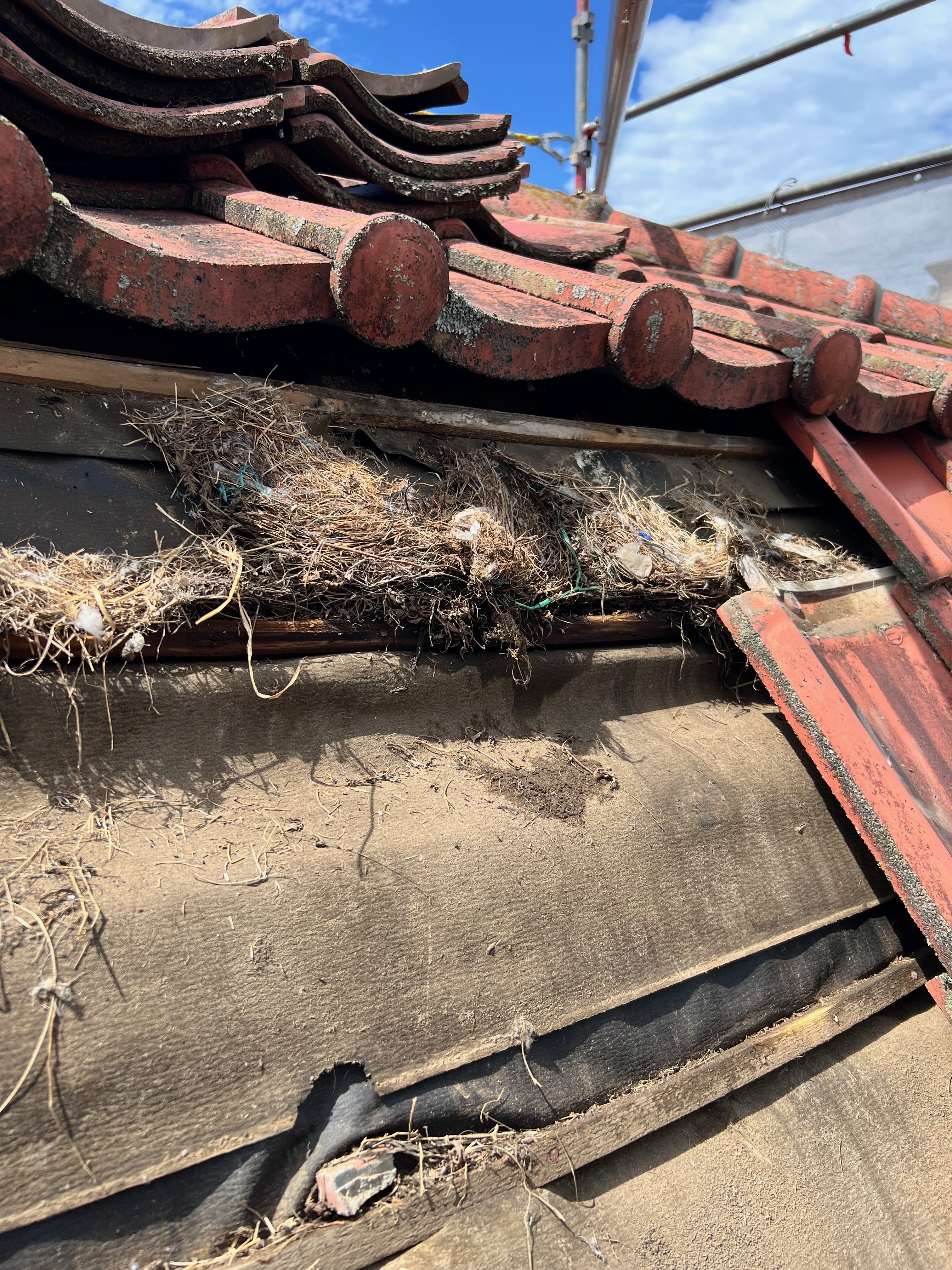 瓦をめくって行くと鳥の巣がいくつか出てきました。