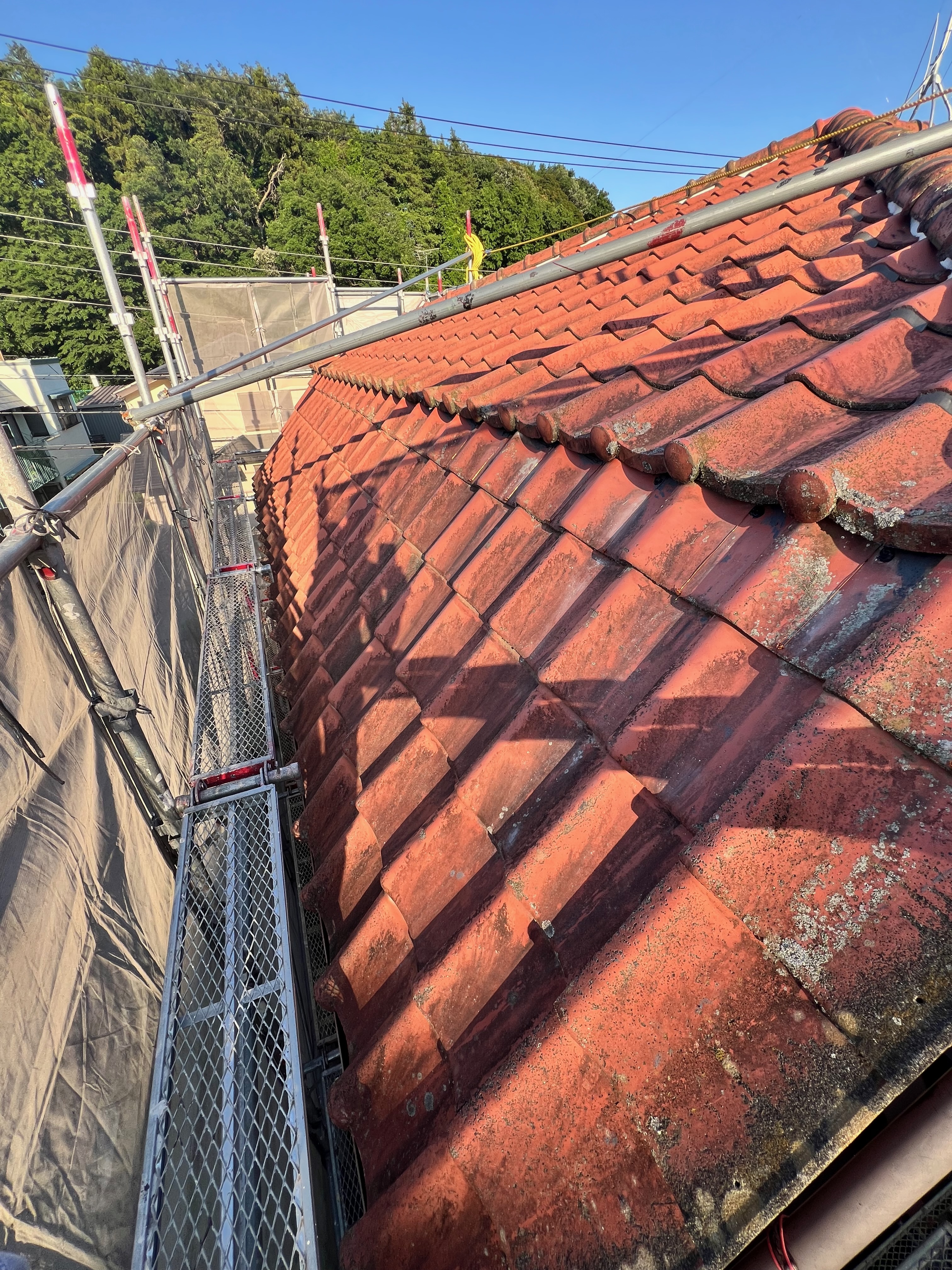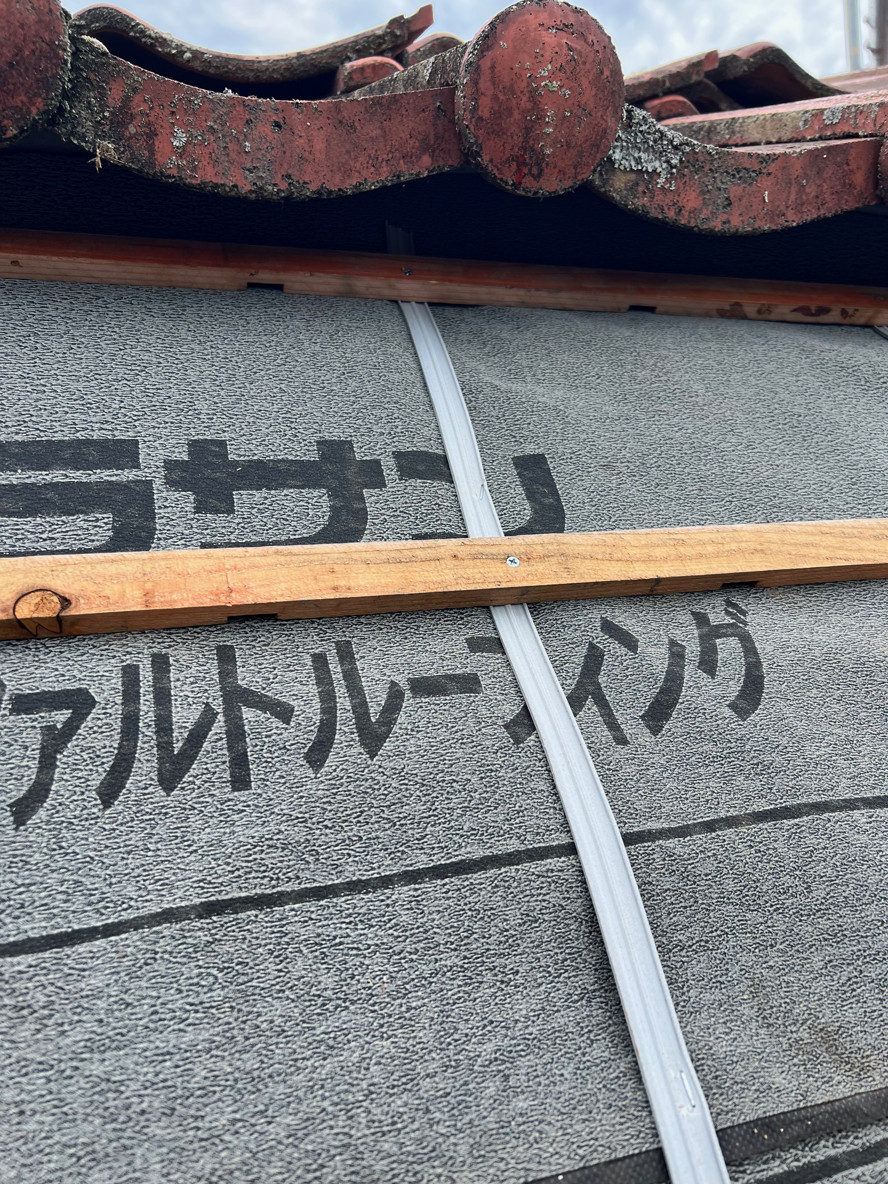 瓦をめくった箇所は新しくアスファルトルーフィングを敷き、水抜き加工瓦桟を取付けしました。