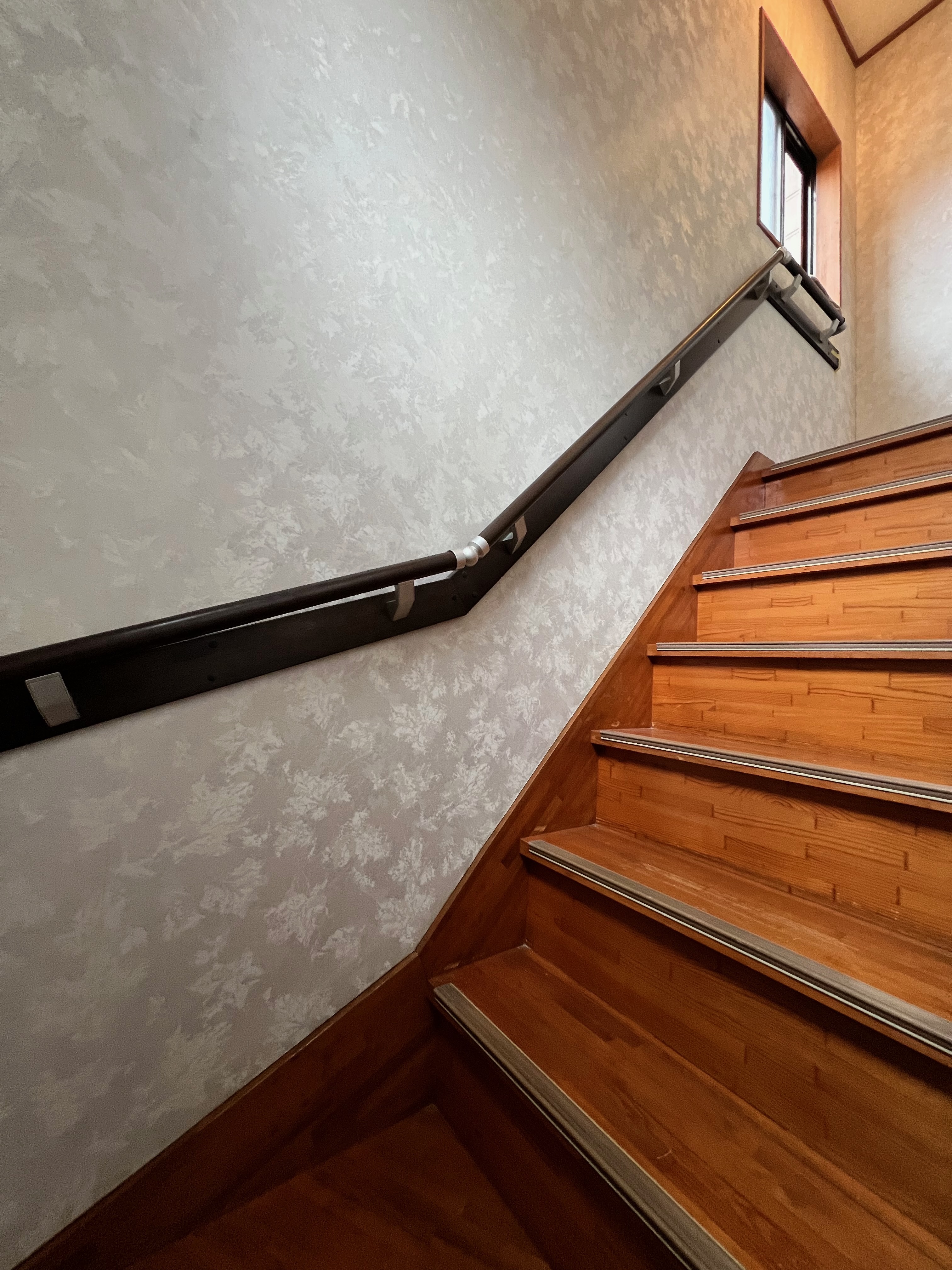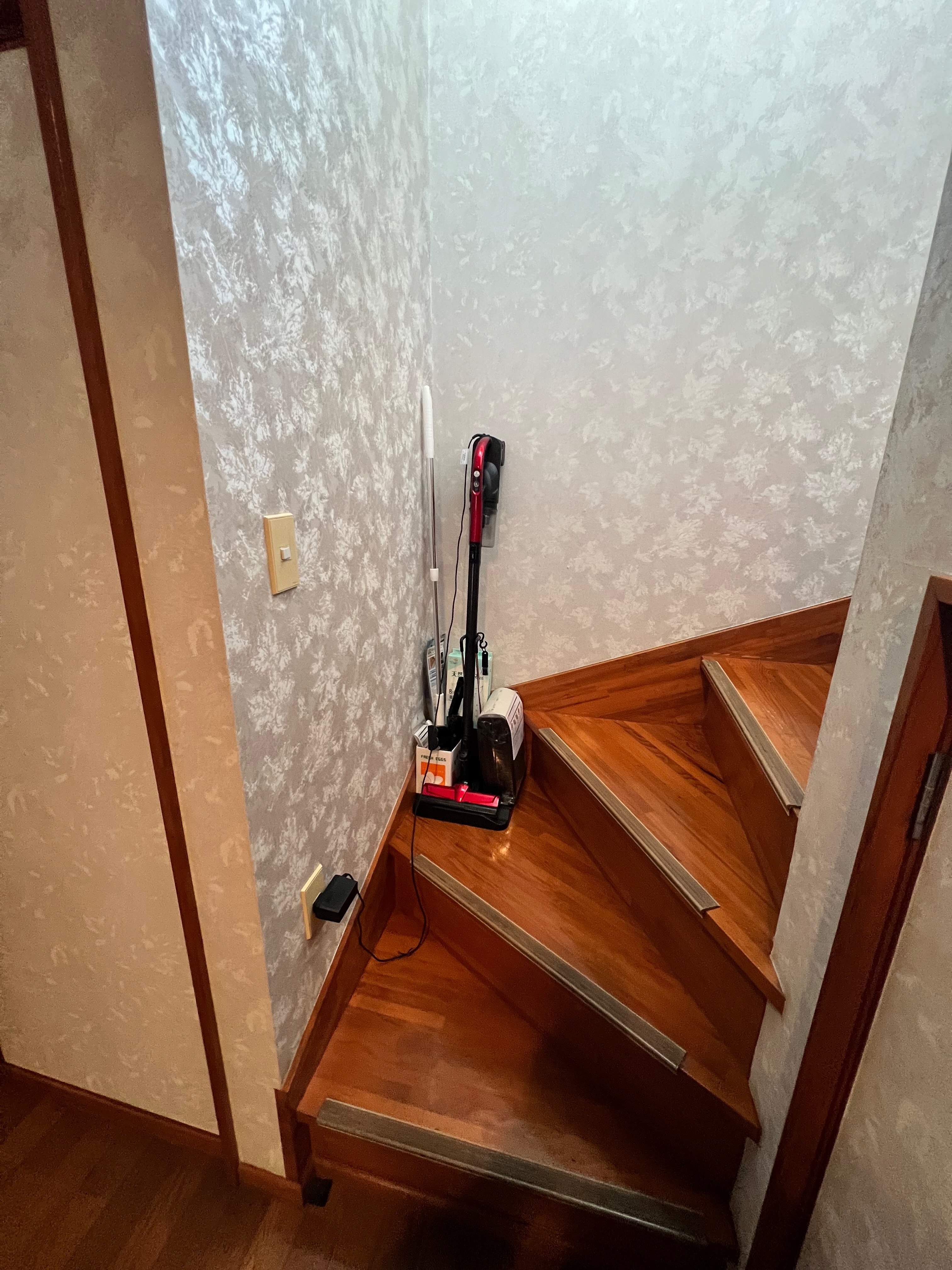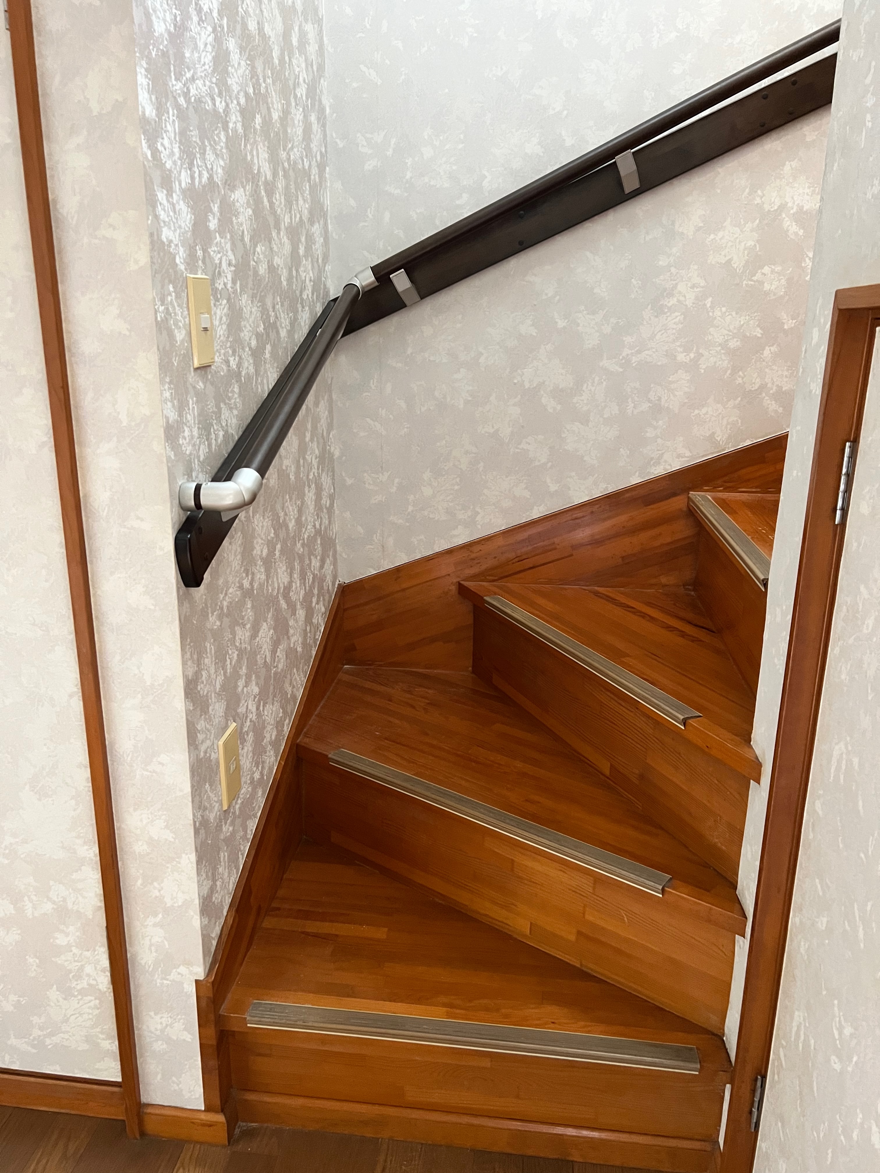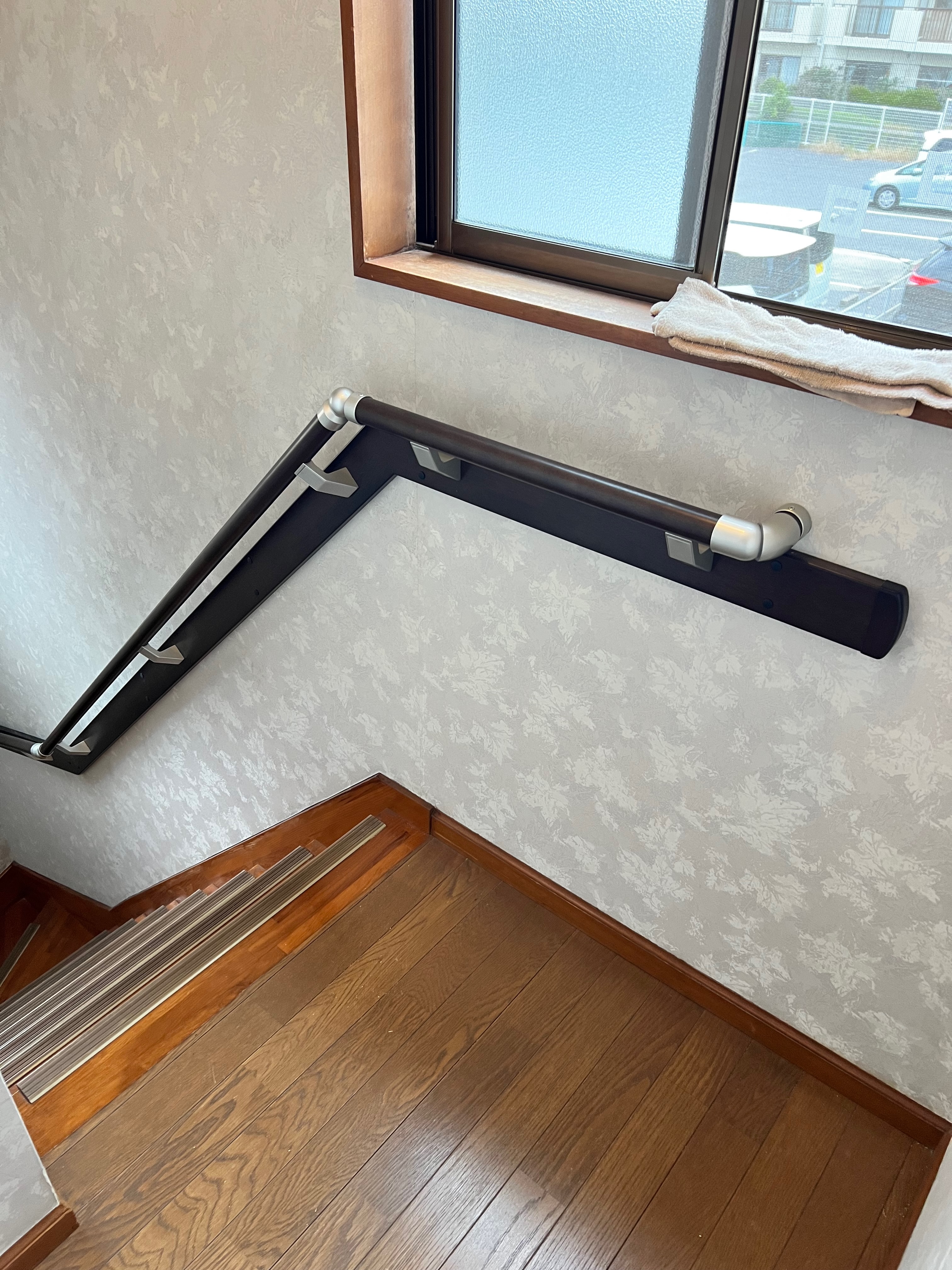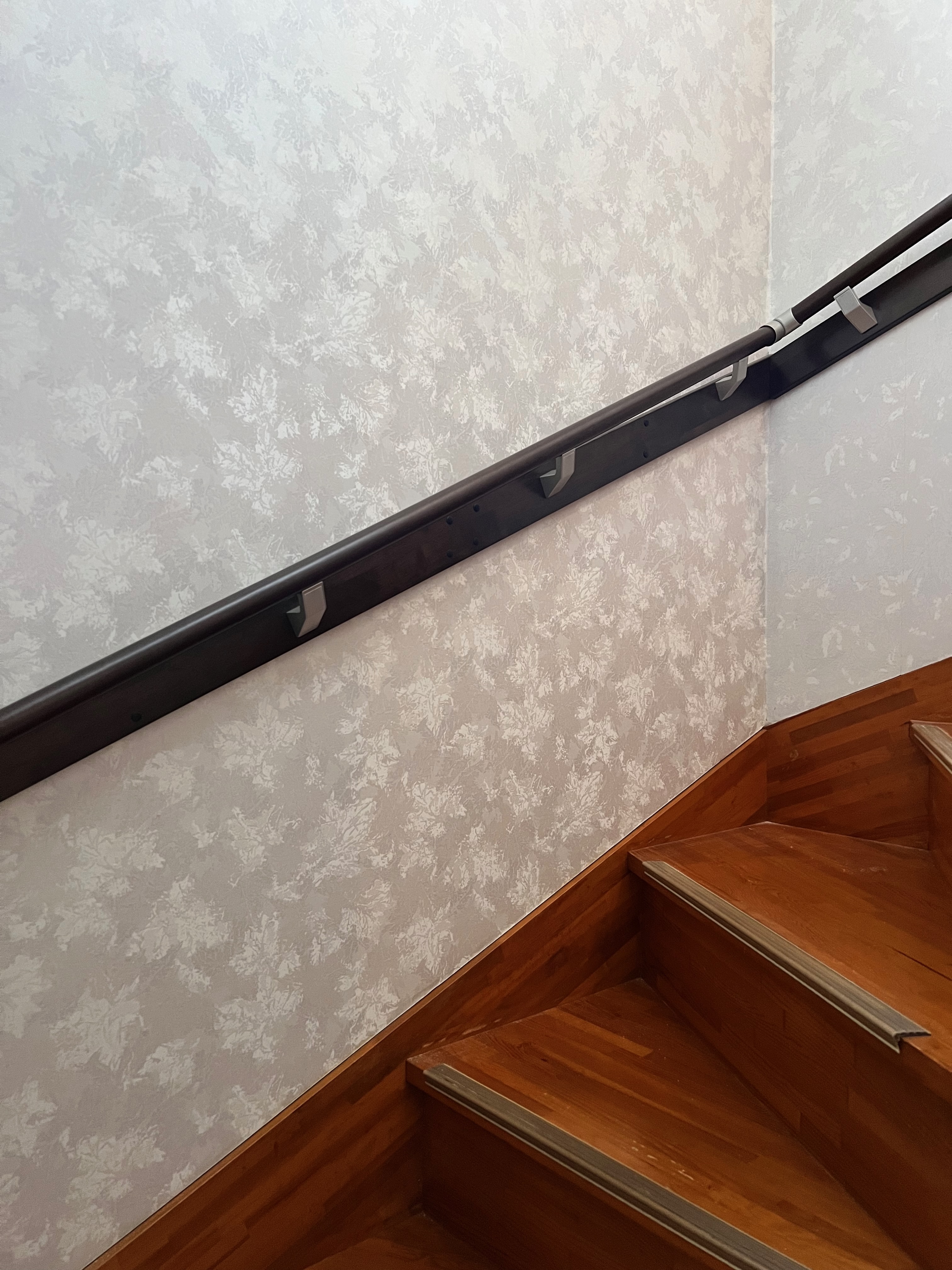 クロスは貼り替えず手摺りのベース材を使って手摺りを取付けました。