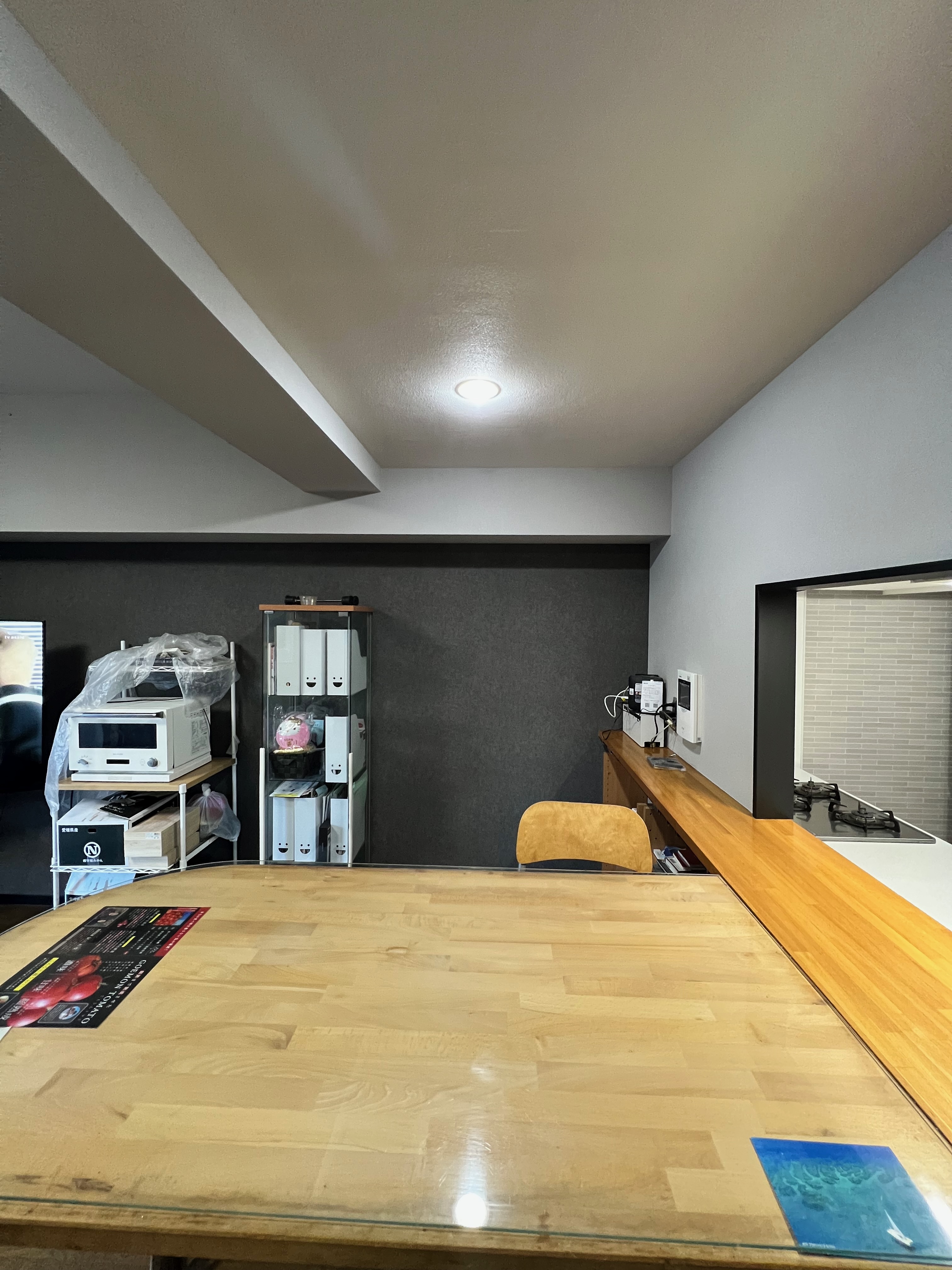 リビングもクロスを貼り替え、1面はアクセントで材料変えて貼りました。